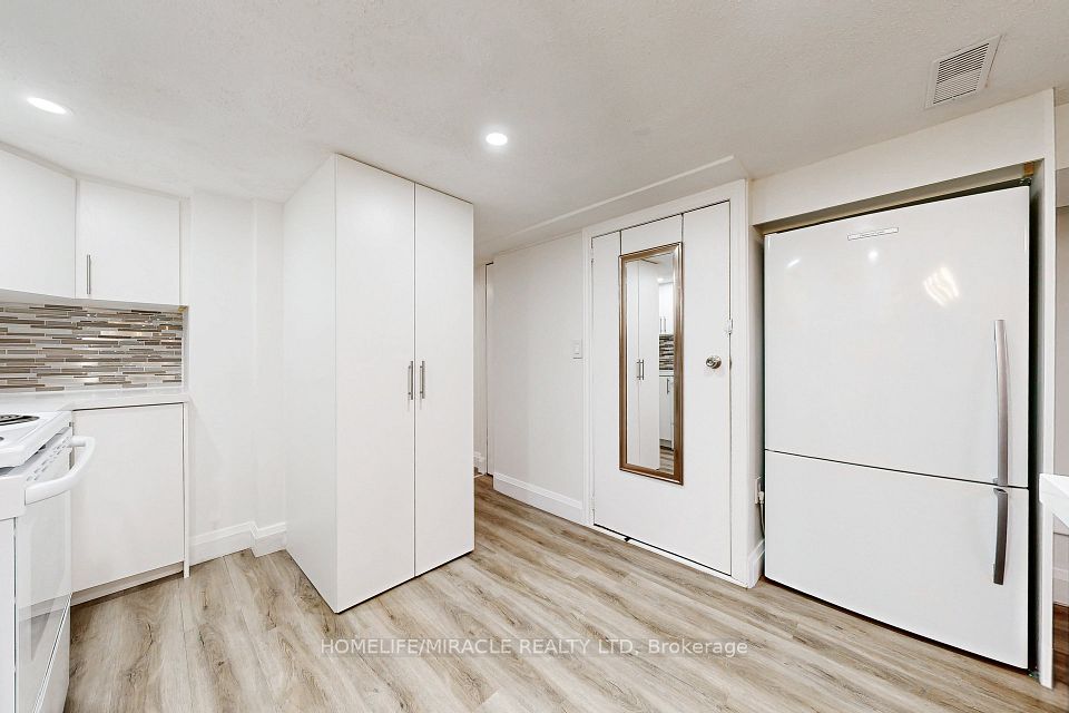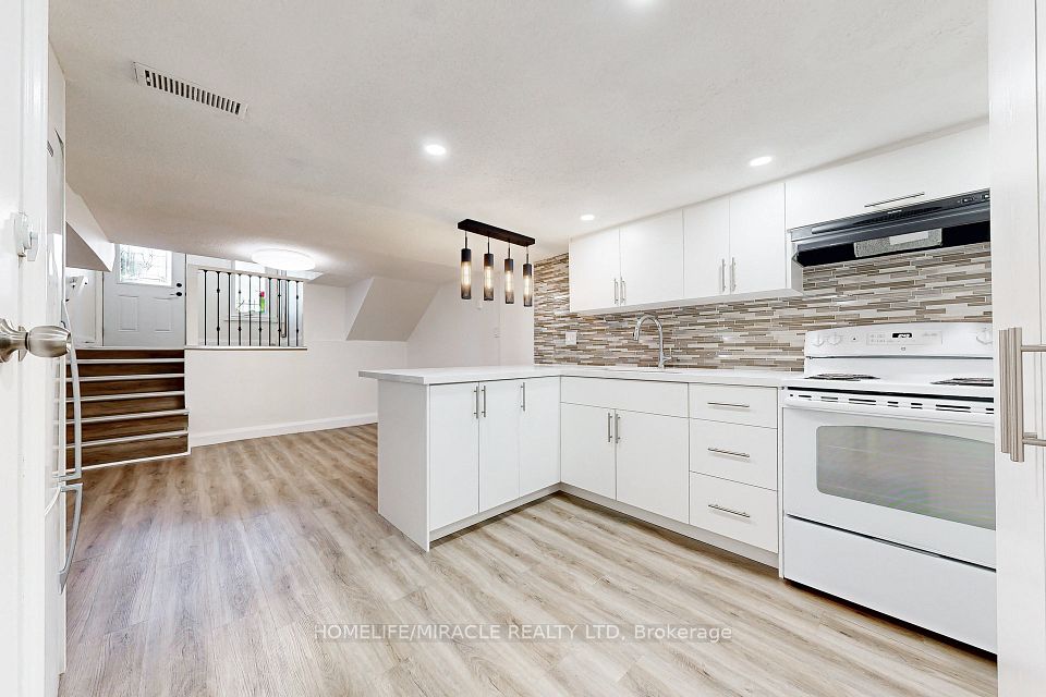 Welcome to this beautifully basement suite featuring a private walkout entrance and an open-concept layout that seamlessly blends living and dining spaces. The upgraded kitchen boasts granite countertops, a sleek black backsplash, and elegant pendant lighting. Enjoy the convenience of in-unit laundry with your own washer and dryer. Freshly painted with new, luminate flooring throughout, this unit also includes a modern 4-piece bathroom. Located just steps from the vibrant heart of Greektown, you're within easy reach of TTC transit, restaurants, and grocery stores.