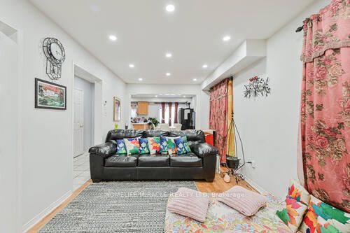 Convenient Great Location!!!Elegant End-Unit Freehold Townhome in Prime Cedarwood Location! Bright and spacious 3+2 bedroom, 3.5-bath home offering the feel of a semi-detached property. This well-maintained 2-storey features a functional open-concept layout with hardwood floors, covered porch area, modern lighting, and pot lights throughout the main living areas. Convenient second-floor laundry and generously sized bedrooms. The finished basement adds excellent living space with a large rec room, two additional bedrooms, and a full bathroom-ideal for extended family or guests. Enjoy the convenience of a single-car garage and private driveway. Located in the highly desirable Cedarwood community, just minutes to shopping (Costco, Walmart, Home Depot, Rona), schools, parks, golf course, community center, and quick access to Hwy 401 & 407. Move-in ready and a fantastic opportunity in one of Markham's most sought-after neighborhoods! Improvements: Dishwasher (2025), Quartz Countertop (2025), New Furnace under warranty (2023), Garage Door (2022), Side Alley (2021), Back lawn (2021), Attic (2022), Drive way (2020), Roof (2020), Front Yard (2020), Washer (2019), Pot lights (2019), Porch (2018), AC (2015).